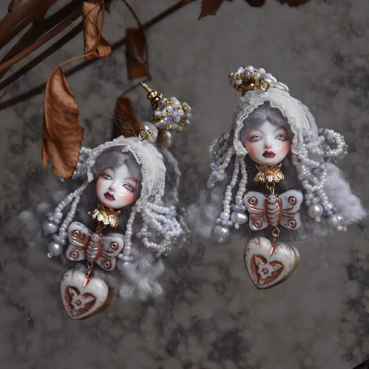 Delicately crafted with a mix of premium materials including lightweight clay, resin clay, wool felt, glass beads, and pearls. Each one is one-of-a-kind handcrafted artpiece.
